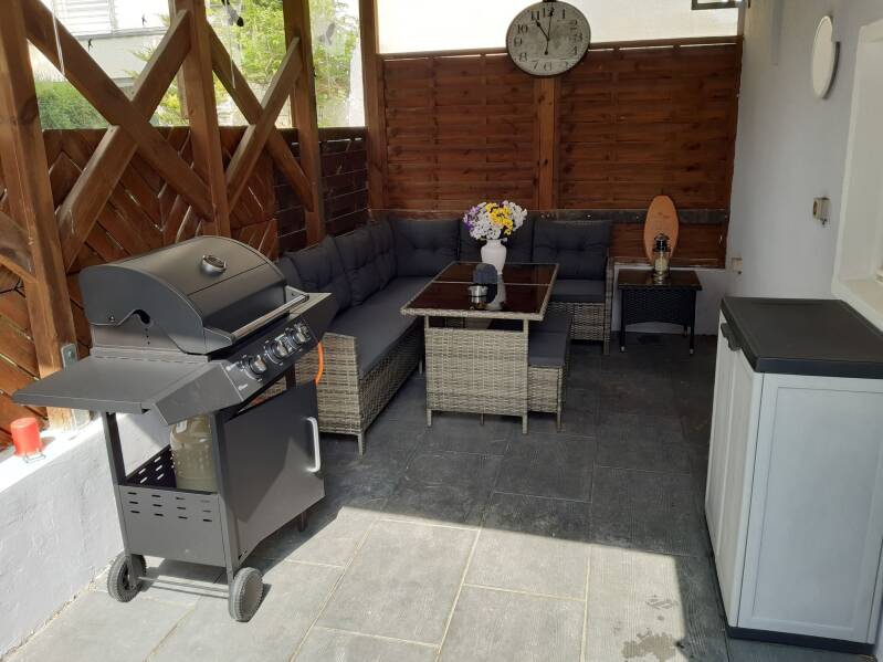 Unsere 90qm große Ferienwohnung (Doppelhaushälfte) bietet Platz für bis zu 6 Personen und erwartet Sie mit einem schönen Garten, großem Balkon, überdachter Terasse mit Grillplatz und kostenfreiem WLAN.
